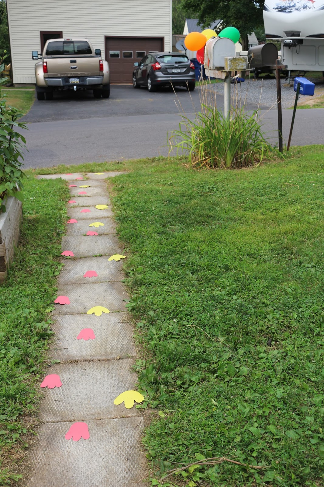 | I made Big Bird and Elmo footprints leading up to the house from one direction. |